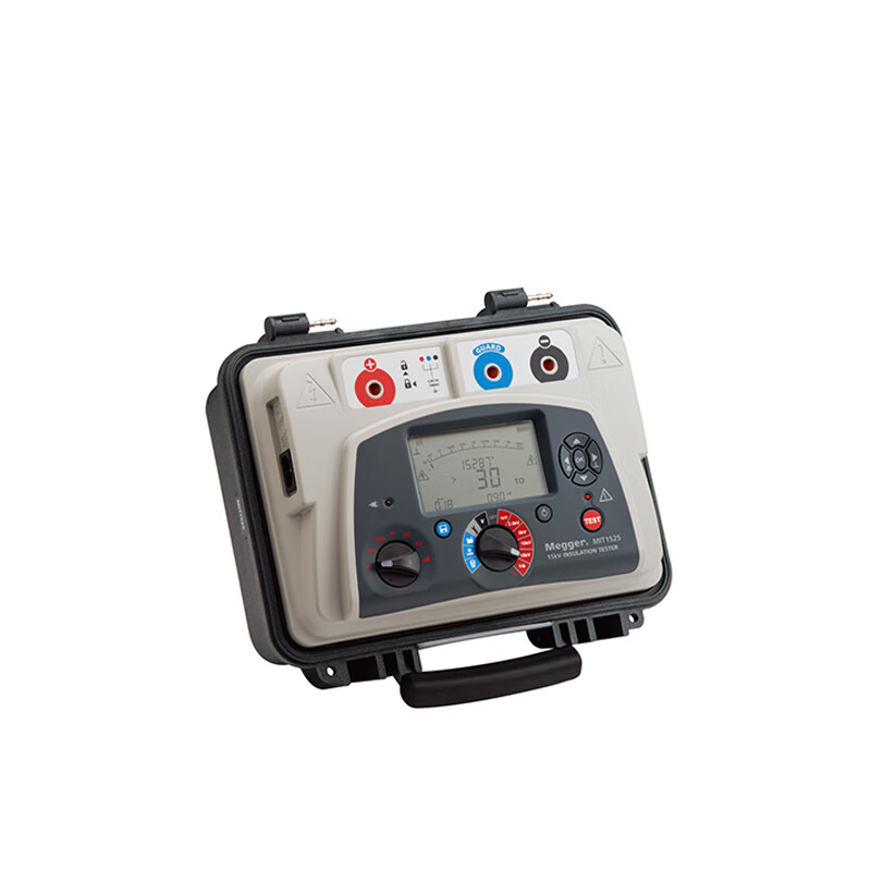 n15kV引线组的绝缘电压为15kV。存储功能支持带时间/日期的测试结果、数据记录以及将结果调用至屏幕。完全隔离的USB设备接口(B型)用于将数据安全传输到Megger 的PowerDB Pro、PowerDB Advanced和PowerDB Lite设备管理软件。(限MIT525、MIT1025和MIT1525)